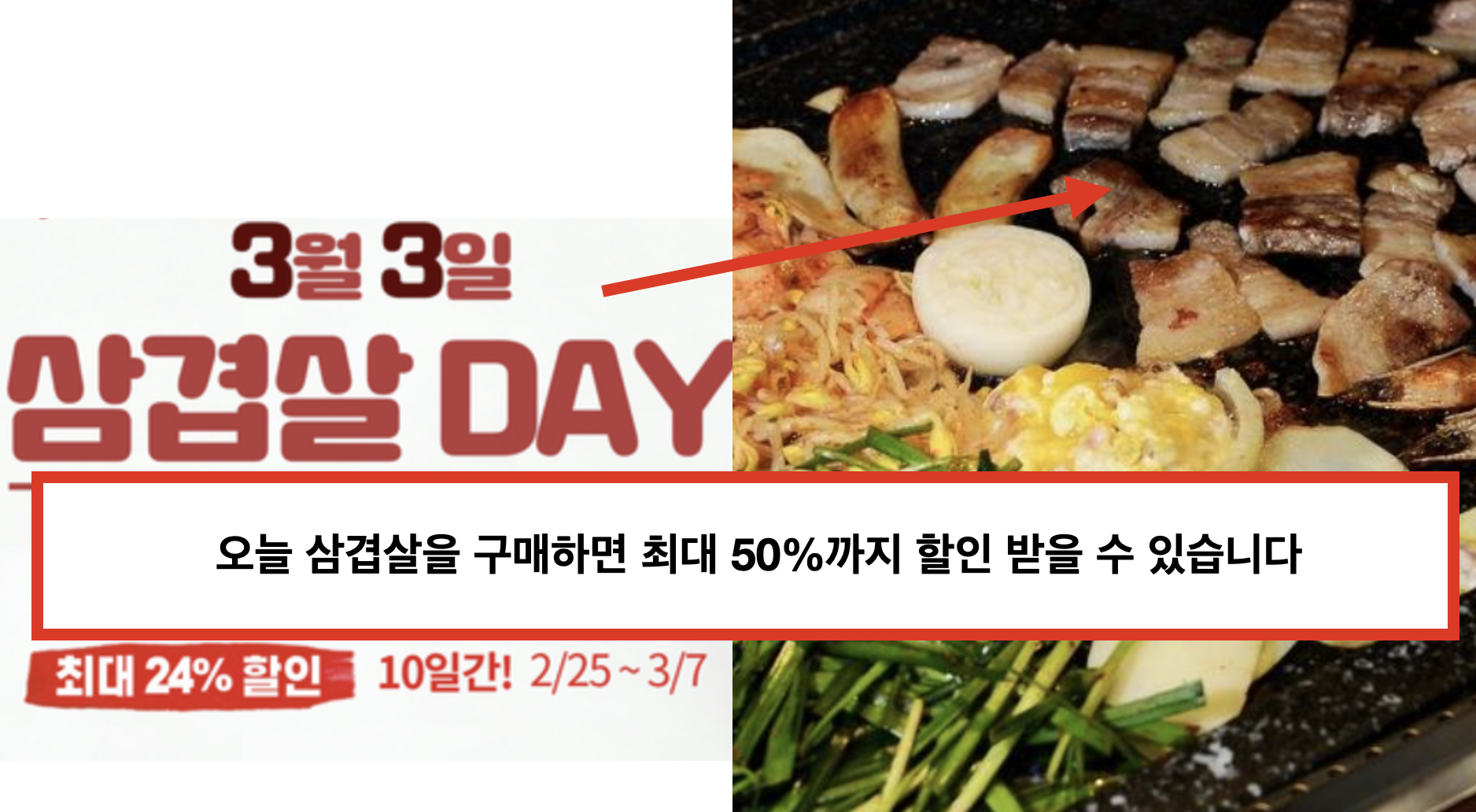 서민음식으로 알려진 삼겹살은 누구든지 좋아하는 음식일 수 밖에 없습니다. 저 역시도 1주일에 한번 쯤은 즐겨먹는 음식 중 1가지입니다. 1년에 1번만 있는 삼겹살데이를 맞이하여 다양한 프로모션이 제공되고 있으며, 혜택을 놓치지 않고 드시는 것을 추천드립니다.