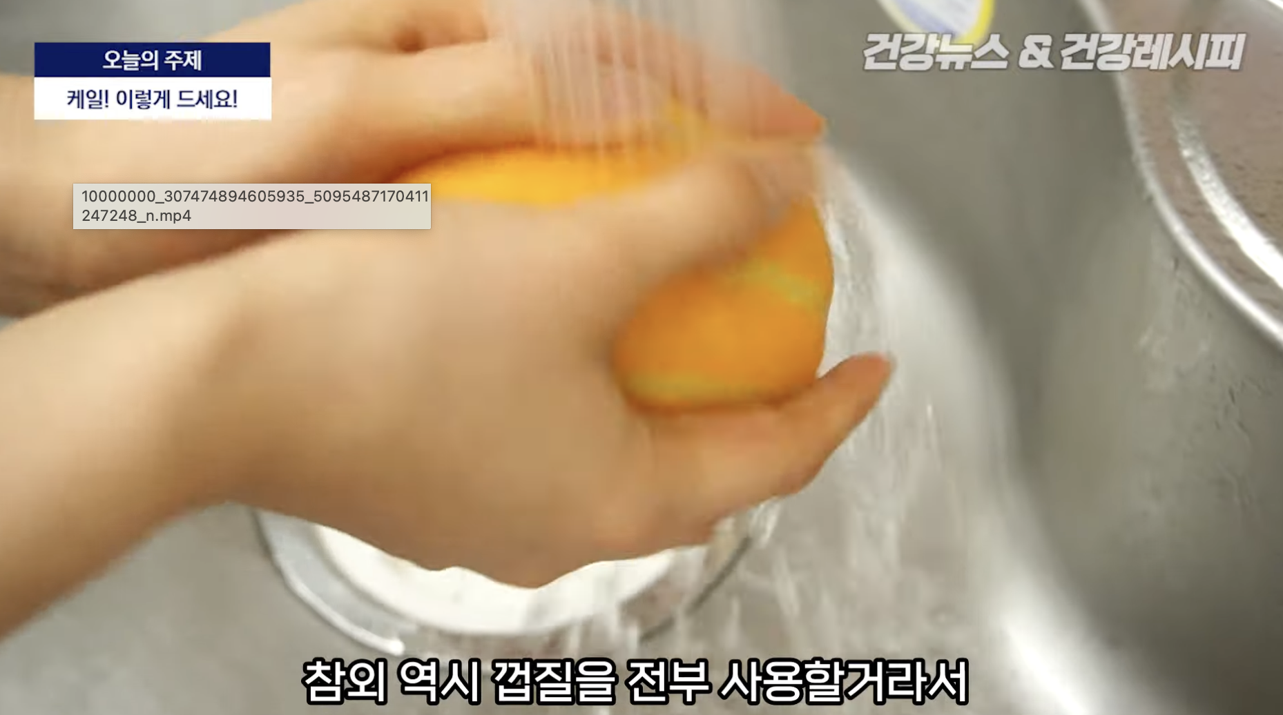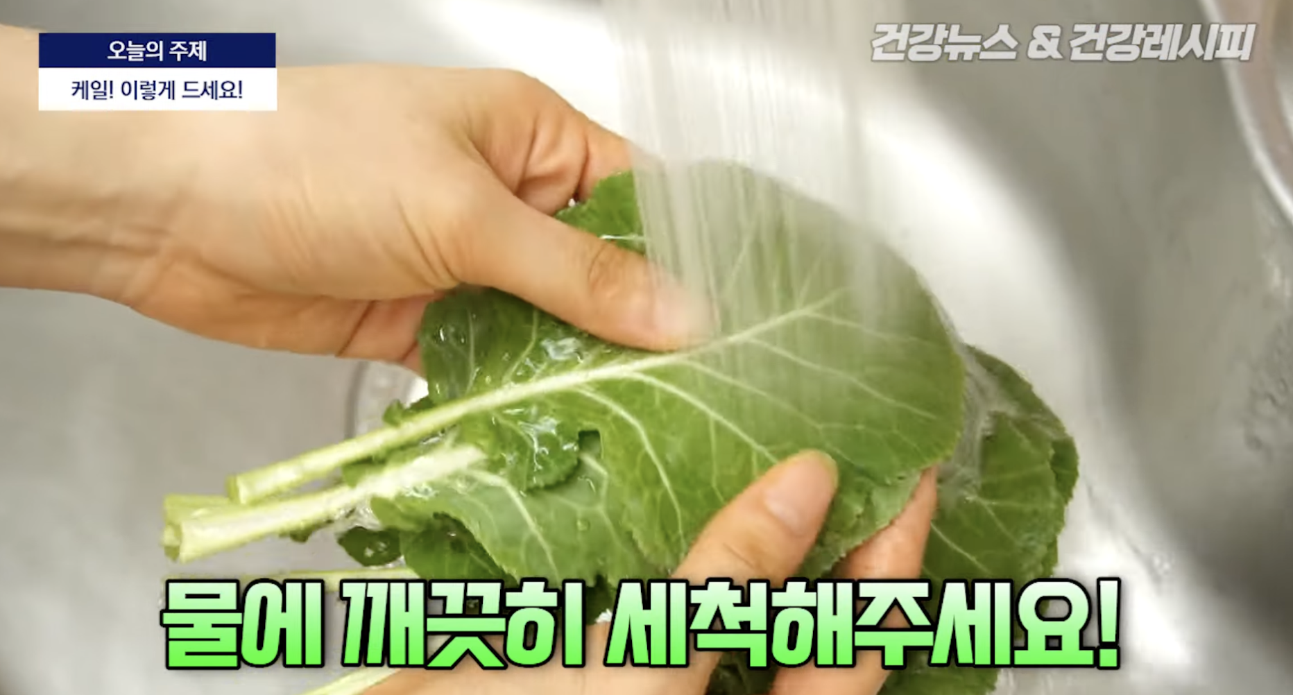 케일은 유기농으로 사용하는 것이 가장 좋으나 유기농을 구할 수 없다면 가지고 계신 케일을 흐르는 물로 깨끗하게 세척해야 합니다. 골다골증 예방에 케일만 갈아서 먹어도 골다공증 예방에 도움이 됩니다. 참외와 함께 넣는 이유는 케일 자체의 쓴맛을 제거할 수도 있습니다. 참외는 칼슘 체내흡수율을 증가시키는 기능도 포함되어 있다는 점입니다.