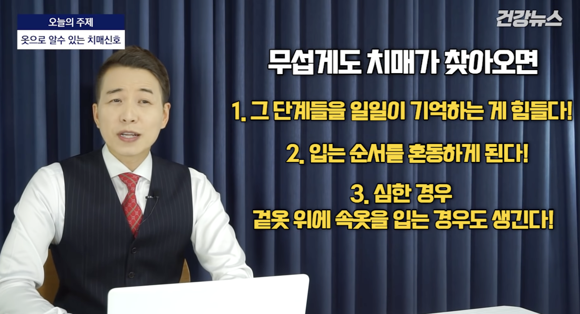 옷을 입는 방법을 이용하여 치매를 확인하기 위해서는 하단 유튜브를 참고하시면 자세하게 확인할 수 있습니다.
