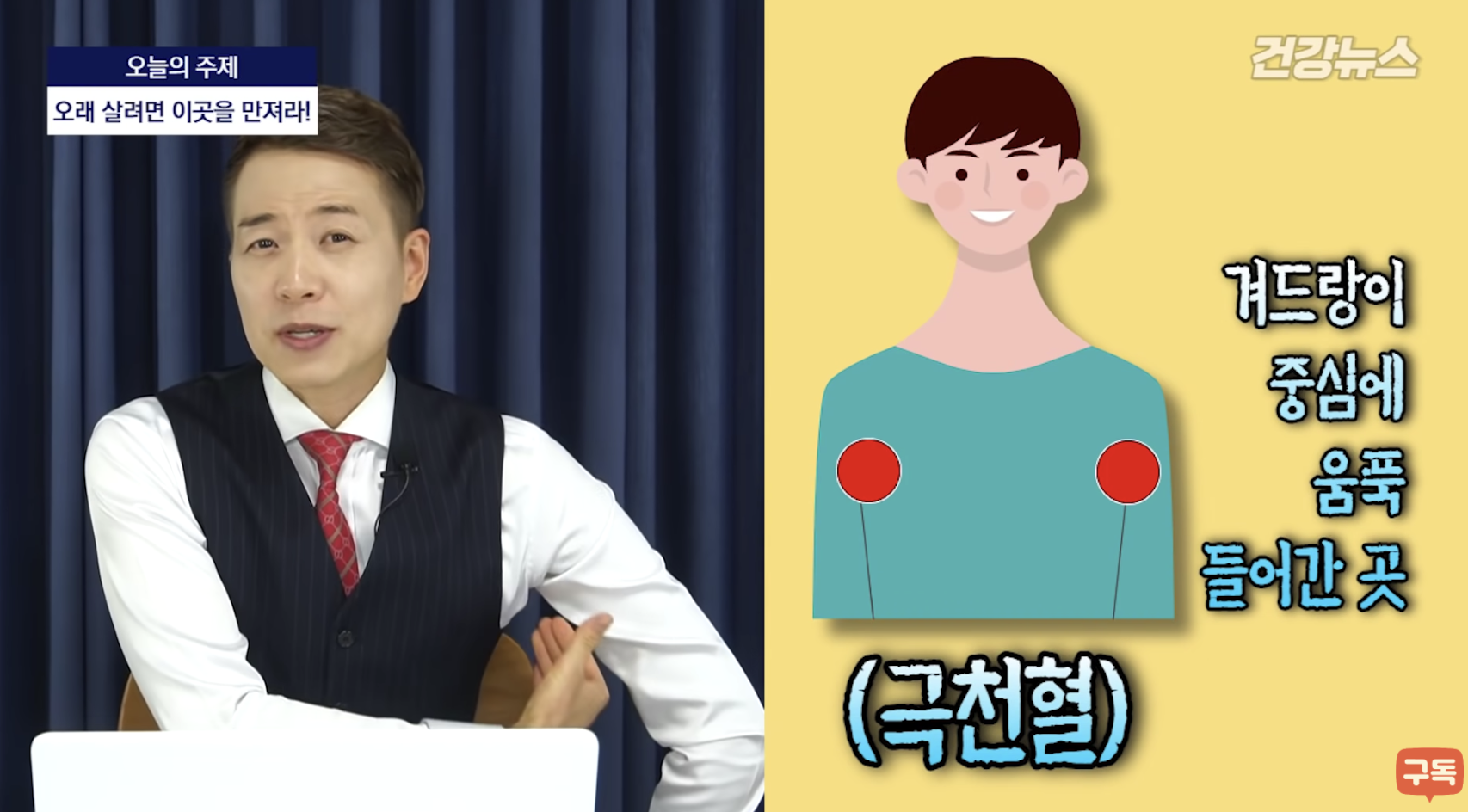 겨드랑이 중심에 움푹 들어간 곳을 눌러줍니다.